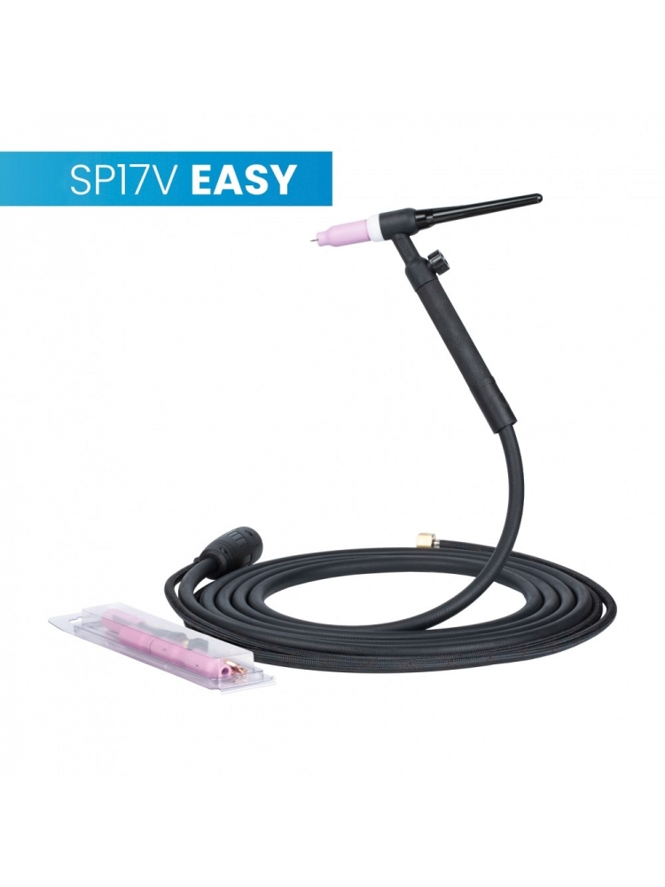 La torche TIG Spartus® 17V – série Easy est conçue pour les travaux de soudage plus exigeants, tout en garantissant une excellente ergonomie. Avec ses 4 mètres de longueur, elle offre une grande liberté de mouvement pour tous vos projets TIG.